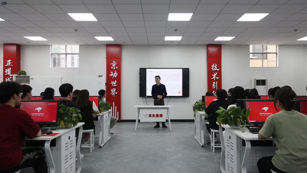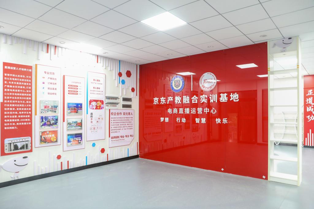 京东产教融合实训基地承担管理学院电子商务、物流管理、市场营销等专业学生的实习实训,采用专业教学实训平台,开展真实的电子商务运营、网上支付、市场营销以及客户服务,与通信运营商连接,实现营销、呼叫中心的所有功能。京东产教融合实训基地的建成使学生能够更真实、全方位的参与电商企业运作的真实流程,增进学生对各个环节的理论认知和实践接触,实现从学生身份到职业人的转变。京东产教融合实训基地是按京东实际业务场景建造的模拟化实训室,能够承担电子商务京东班的《直播电商》、《商品拍摄及图像处理》、《网店管理与实务》、《短视频内容电商》等专业核心课程的教学工作,可以解决电商客服、美工视觉优化、短视频内容制作、营销活动策划大型项目的实战演练,帮助学生更直观地掌握电商运营环节中的相关知识和技能,解决学生快速地融入工作的问题。