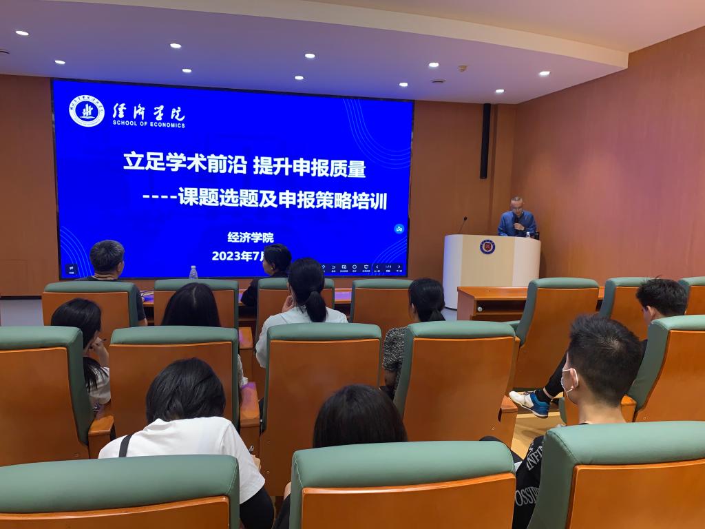 为进一步提升学院教师申报课题的质量和竞争力,7月6日,经济学院在图书馆报告厅举办了学院专业带头人、中南财经政法大学吴强教授主讲的“立足学术前沿 提升申报质量”培训会。