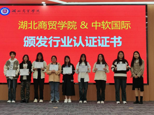 答辩汇报结束后,企业导师及管理学院教师们分别给各组成员颁发了行业认证证书。企业导师贾爱华对学生们的实习表现做总结讲话。他称赞学生们在实习期间能够灵活运用所学知识完成项目设计,虽然遇到很多困难,但是同学们勇于迎难而上,挑战自我,突破自我。他真诚的祝愿同学们毕业后能够找到理想的工作。