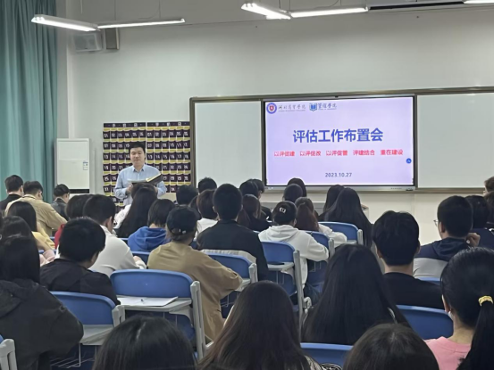 本科教学工作合格评估在即,为进一步调动管理学院咸宁校区师生的积极性,营造“人人关心、人人参与”的浓厚氛围,学院于10月27日中午在XJB-411举行教学合格评估工作布置会。学院副院长徐刚、党总支副书记王胜,辅导员以及当天在咸宁校区有教学任务的任课老师们出席会议,学院咸宁校区33个行政班级各班的班长、学委、团支部书记参加。