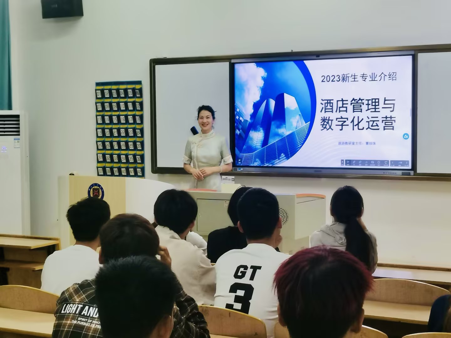 图2 曹珍珠老师为2023级酒店管理新生作专业介绍