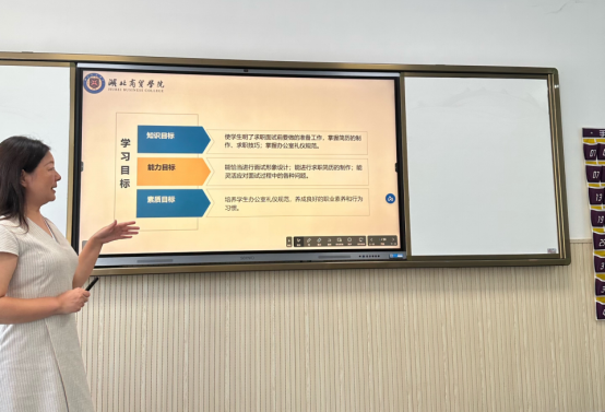 喻珍老师教学环节设计完整,从回顾实习礼仪与求职自荐开始,通过提问导入“怎样才能制作一份优秀的简历”的问题,使用微助教引导学生思考进而讲授简历的基本原则、简历的结构内容、简历的注意事项等。最后总结简历制作三原则、五部分、六不能。其他老师在点评中表示喻老师的教学条理清晰,娓娓道来,课件制作精美,学生定能有所收获。