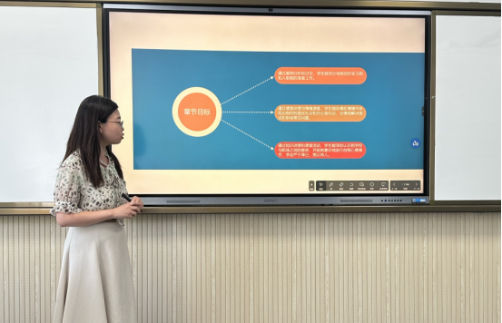 苏晓梦老师选择了职场礼仪的部分内容进行了教学展示,从小视频“找工作的小伙”引入相关问题,生动有趣。课程教学手段丰富,结合实际的视频和图片能很好的引发学生的兴趣。其他老师在点评环节中指出,苏老师教态端庄,这本身就为学生的个人礼仪作出了良好示范,教学过程流畅,值得学习,同时也提出了课件制作的改进意见。