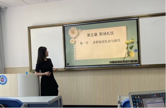刘军老师选择职场礼仪中求职礼仪、办公室礼仪的内容进行磨课。通过提问“要具备怎样的职业素养”来引入显性素养、隐形素养的内容。讲授过程中结合实际,比如专业不对口的时候简历要怎么写等引发学生自主思考,强调求职信要注意的问题。其他老师在点评环节中表示刘老师的课堂节奏极好,表达富有感染力,教学方法灵活值得学习,能让学生全方位积极主动的参与到课堂中。