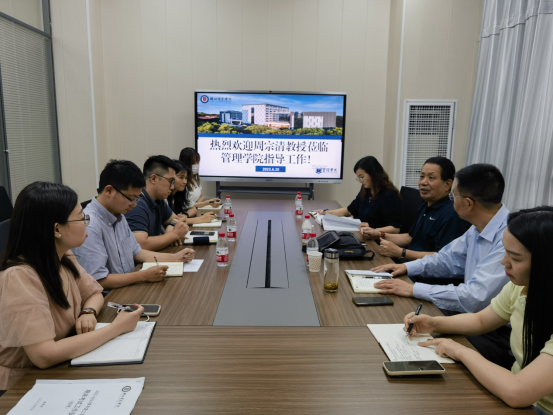讲座结束后,周教授受胡校长和严院长的邀请,前往管理学院与老师们开展了进一步的深入交流。周教授分享了美国尼亚加拉大学旅游与酒店的专业设置上好的经验做法以及旅游管理专业的发展前景,胡校长对旅游专业的人才培养方案进行探讨,严良院长介绍了管理学院旅游管理专业的相关情况,并提出当前管理学院为了培养高质量的应用型人才也在积极进行系列的改革。此次交流会,双方从旅游管理专业的学科建设、人才培养方案、产业学院、校企合作、课程改革等方面进行了深入研讨,助力学校的合格评估工作。