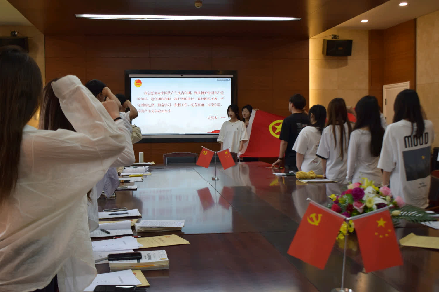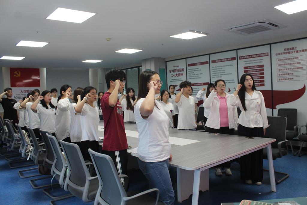 刘淞在仪式上带领全体团员庄严宣誓。最后,她鼓励新团员们积极进取,勇担时代使命,用青春热血谱写新时代的共青团华章!