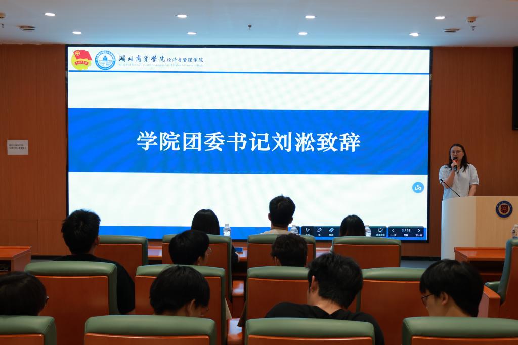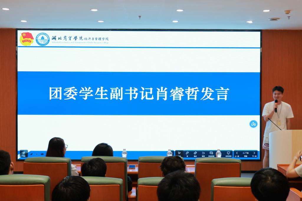 接着团委学生副书记肖睿哲代表发言,他以自身为例,讲述了自己的工作心得和成长收获。