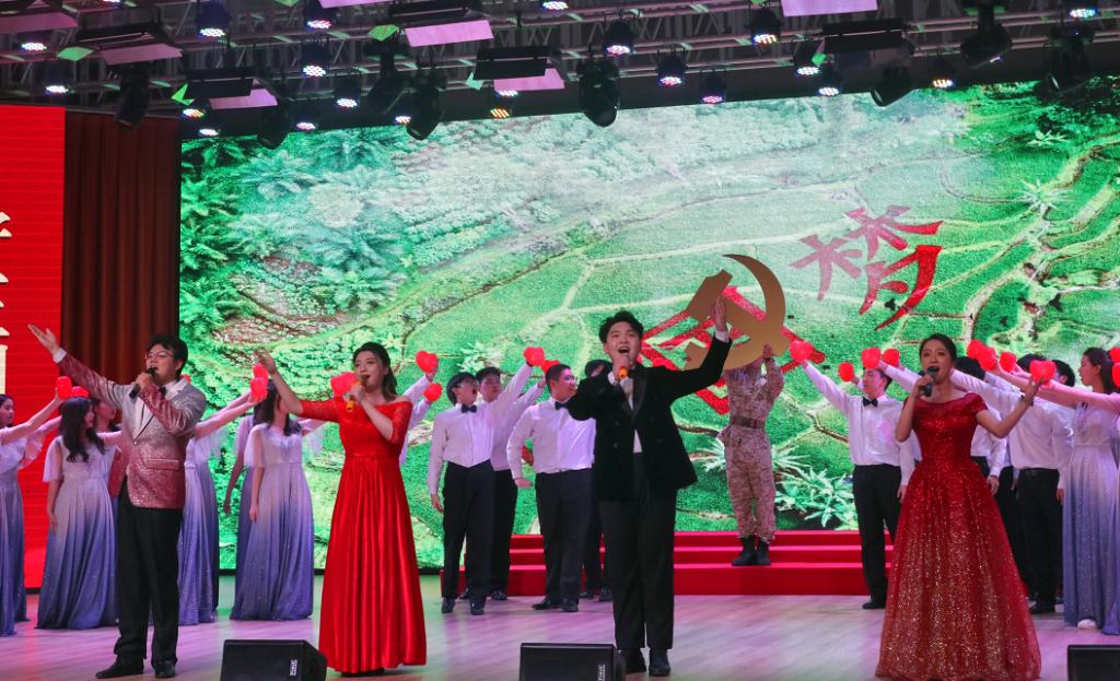 由经济学院追光合唱团带来的合唱《我的祖国》《祖国不会忘记》《领航》,将中国共产党百年历程的鲜活动人场景搬上舞台,带领师生在红色文化长廊中穿梭。