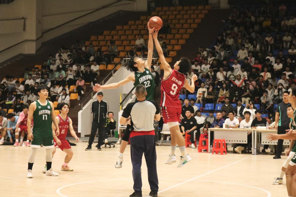 经过近半个月的激烈角逐,经济学院与体育学院会师决赛。比赛过程中,双方球员发挥出色,场上气氛十分紧张,现场观众热情高涨,啦啦队欢呼声此起彼伏。在球员间完美的配合之下,全场比分最终定格在76:71,经济学院以5分的优势夺得桂冠。