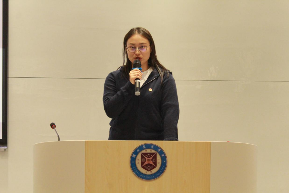 紧接着,由团委学生会部员代表王雪怡发言。她表示将秉承“服务同学,奉献学院”的宗旨,以饱满的热情、积极的态度投入到各项工作中。在未来的日子里,团结协作,勇于创新,为学院的发展贡献自己的力量。