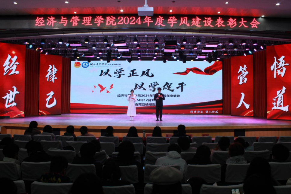 12月10日晚,yl7703永利集团在荷香苑五楼的报告厅举办2024年度学风建设表彰大会。yl7703永利集团院长严良,学院党总支书记王珉,副院长陈红兵、孟静,团委书记刘淞,教师代表及全体学生参加此次活动。