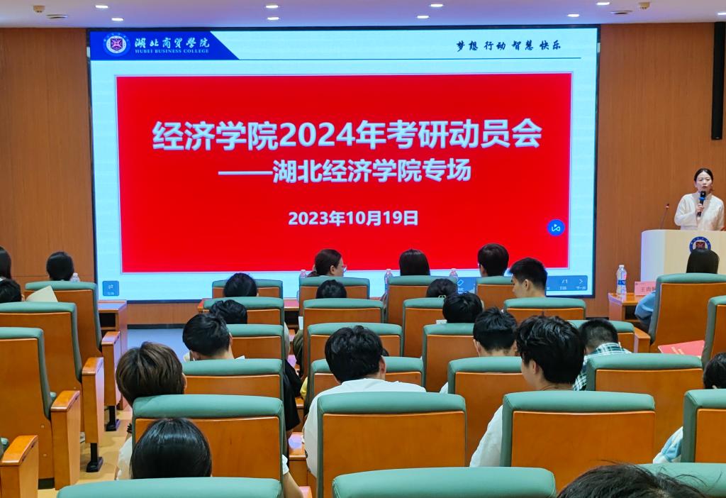 10月19日中午12点30分,经济学院2024年考研动员会暨湖北经济学院硕士研究生招生宣讲会在学校图书馆一楼报告厅顺利举行。湖北经济学院金融学院副院长杨申燕、法学院副院长王腾、法学博士李培培、学科秘书王尚娴、郝凤娇等一行,yl7703永利集团经济学院党总支书记吴俊、院长陈靓秋出席了会议。会议由院长陈靓秋主持,2020级毕业生及2021级部分学生参加。