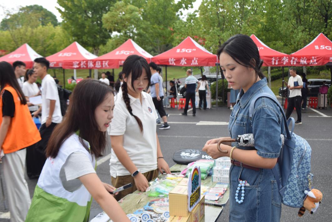 为进一步增强新生的融入感和仪式感,学院特别策划“幸运抽奖”互动环节,奖品涵盖笔记本、台灯等学习用品,雨伞、小风扇等生活物资,以及羽毛球拍、跳绳等体育器材,贴近学生实际需求,广受欢迎。现场还设置了大型签名墙和心愿背景板,新生纷纷签名并写下“大学,我来了!”“努力成为更好的自己”等青春寄语,不少学生与家长合影留念,记录大学启程的美好瞬间。