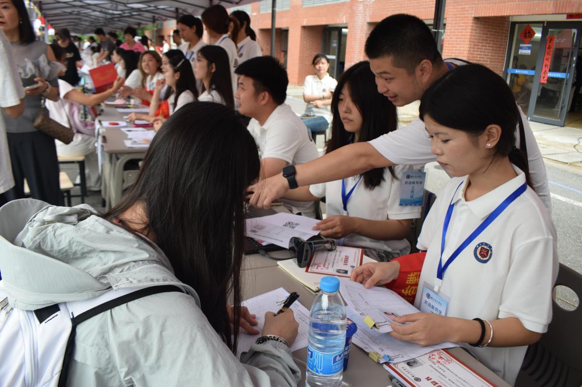 迎新现场,学院设置“一站式”报到服务点,整合信息核验、宿舍分配、校园卡办理、军训服装领取等多个环节。师生志愿者全程引导,热情答疑、主动协助,确保新生便捷、快速地完成入学手续。便捷有序的服务赢得了家长和新生的一致好评。