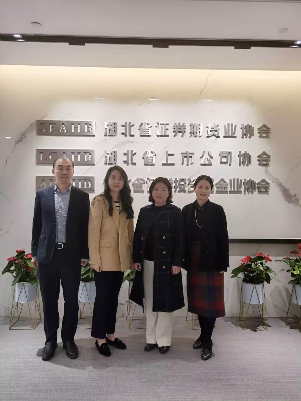 3月30日下午,经济学院党总支书记吴俊、院长陈靓秋前往湖北省证券期货业协会调研,长江证券财富管理中心副总经理张睿陪同前往。