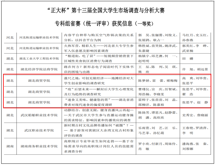近日,“正大杯”第十三届全国大学生市场调查与分析大赛专科组省赛圆满落幕。我校学子荣获省赛一等奖3项、二等奖1项、三等奖1项的佳绩,获奖数量及等级均位居全国同类高校前列,实现了我校在该项赛事中的重大突破。