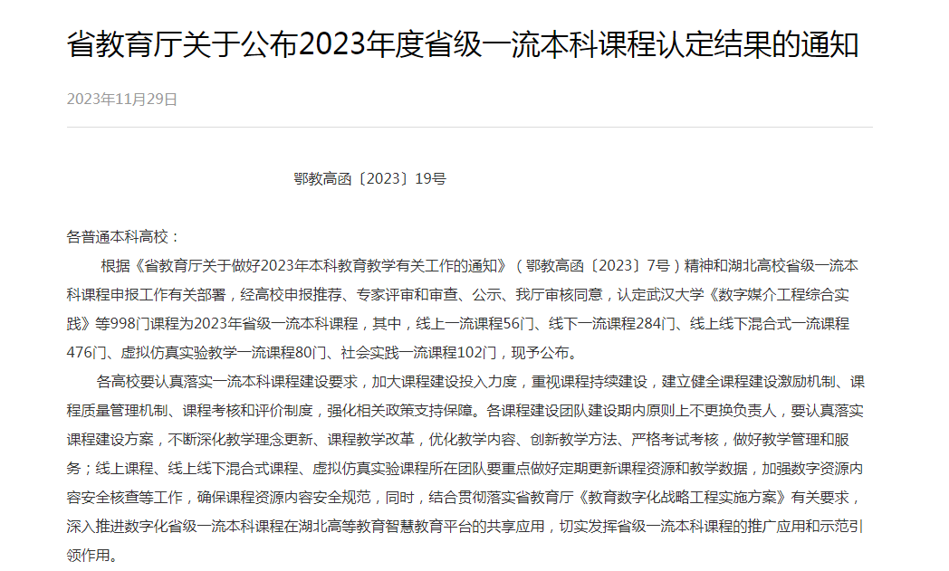 近日湖北省教育厅公布了2023年度省级一流本科课程认定结果,经济学院胡婵副教授主讲的《经济法基础》成功获批线下一流课程、高爽老师主讲的《地方经济发展调查--“经济新青年”的青春实践》成功获批社会实践一流课程。