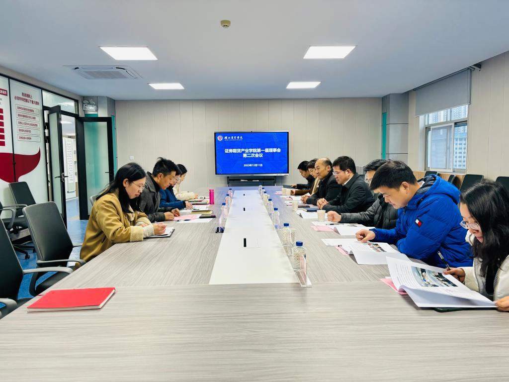 为进一步推进校企深度合作,加强产业学院建设,提升产教融合水平和协同育人效果,12月11日,证券期货产业学院年度工作总结会议在经济学院举行。长江证券投教基地负责人张睿、长江期货股份有限公司副总裁夏凉平、正信期货有限公司营销总监邱继萍、国泰君安湖北分公司首席投顾张朝威、长江期货股份有限公司总裁助理李林志、正信期货有限公司市场培训主管任非及经济学院党政班子出席会议,会议由经济学院副院长盖卫东主持。