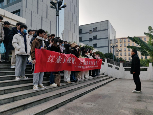 出发前教学质量管理处督导彭宜佳教授为学生们讲话,要求学生们用心看,用心学,增长见识,探索大数据的奥秘,为企业决策服务。管理学院院长严良、党总支书记王珉要求学生们把握实习机会,认真学,提高实践动手能力。