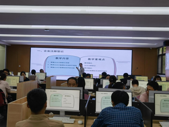 孙瑜老师讲授的《企业盘模拟》实训课实验二“企业模拟运营”,从核名等八个流程详细、具体地讲解了企业注册登记的流程,精神饱满,具有较强的感染力,为其他教师的实训课程开展提供了良好的典范。