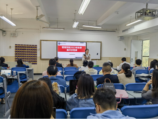 为发挥优秀教师的引领示范作用,进一步提高教师课堂教学能力,提升教师队伍的课堂教学水平,促进教师团队成长,顺利迎接本科合格评估。2023年10月14日,管理学院在综合楼201及101室组织开展2023年秋季集中示范课研讨活动,并邀请教学质量管理处督导专员周秀荣及彭宜佳两位教授亲临现场指导,学院全体专职教师参加此次活动。