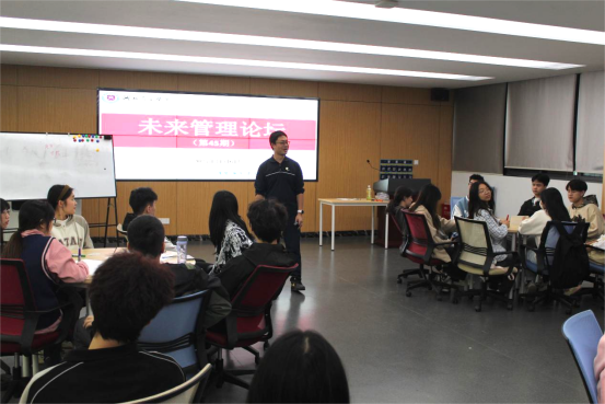 在就业之外,刘青结合未来就业为学生提出建议。他希望学生们能权衡好理想和现实的比重,不要过分追求理想,但也希望学生不要过于应对现实,现实并非是学生放弃理想的理由。他指出管理学院的育人目标是“管乾理坤,夯创新之基”,学生们既要仰望星空,更应脚踏实地,用创新的意识、创意的思维、创业的行动来追逐自己的梦想。