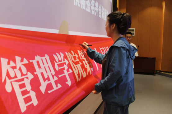 随后,王珉表达了她对管理学院团委学生会的期望,分享了她曾在学生组织的经历,并激励在座同学,要坚持远大理想,坚持刻苦学习,坚持艰苦奋斗,坚持开拓创新,坚持高尚品行,为学校增光,为学院添彩!