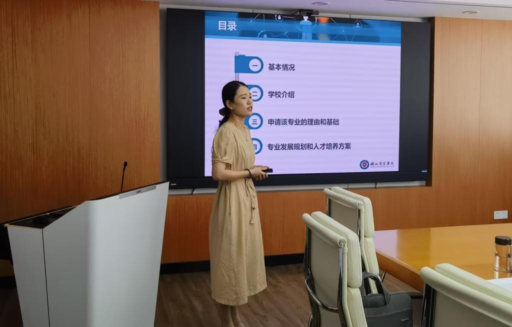 随后,赵静从专业前景、人才需求、师资队伍、办学条件、培养方案等各个方面对该专业的调研情况进行了汇报,着重阐述了申请增设该专业的理由和基础,并详细介绍了专业发展规划和人才培养方案。