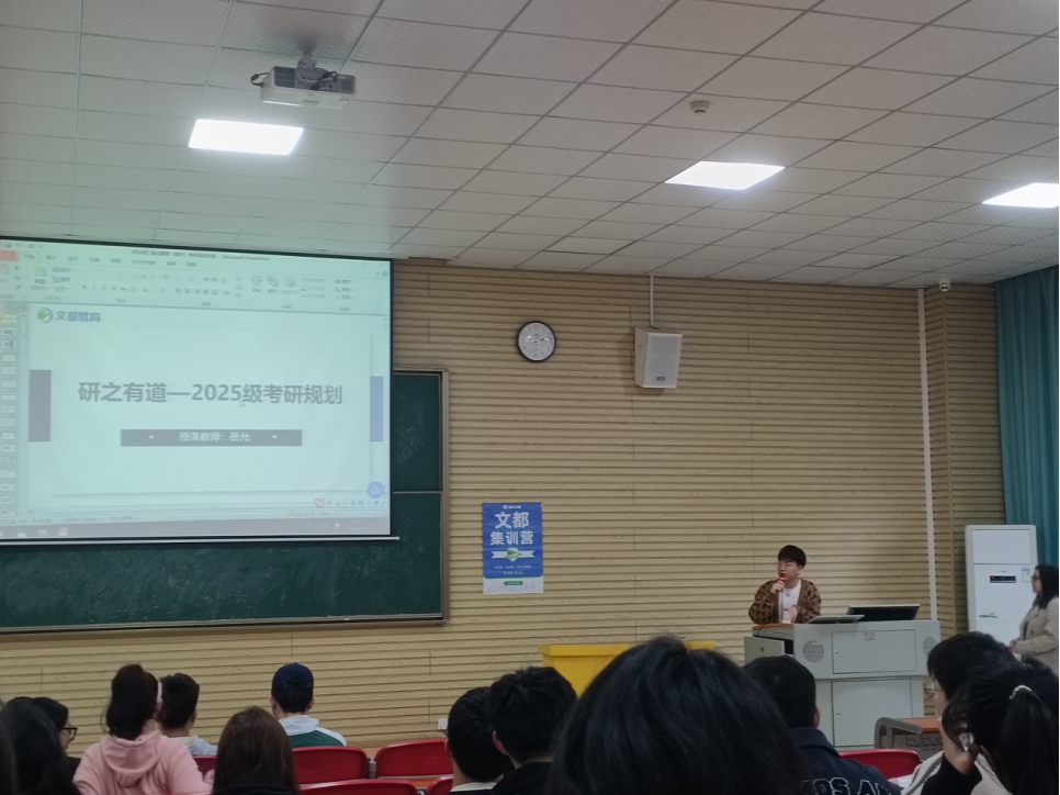 文都教育岳允从当下考研背景、研究生考试的性质,招生考试相关科目、专业招生计划、近年录取情况以及人才培养方案等多方面作了详细介绍,同学们进一步了解到不同专业硕士报考流程和政策优势,现场反响良好。