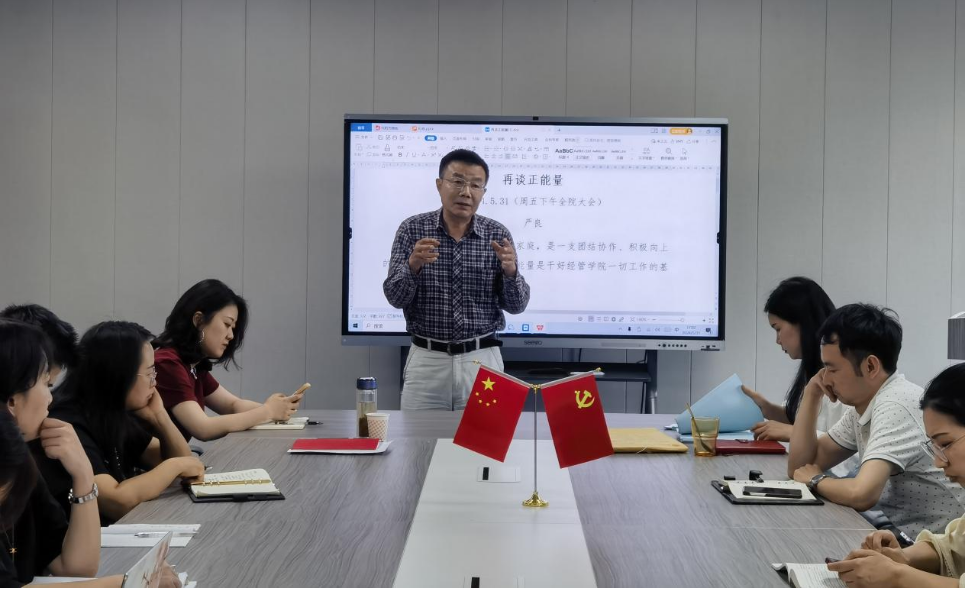 严良就学院试卷与毕业论文自查反馈与整改工作对全体教职工提出要求:一是学院领导班子成员要以身作则,在各个方面起到带头示范作用,严格把控论文指导质量及试卷命题质量;二是专职教师强化责任意识,严格按照规定进行命题;三是教辅人员积极对接需求,牢记使命担当。同时,严良结合近期学院出现的突发状况“再谈正能量”,他指出院领导班子成员主动作为、齐心协力,做动力强劲的火车头是正能量,教研室主任积极承担责任、深入细致开展教研室活动是正能量,专职教师互帮互助、共同解决学院面临的难事急事是正能量等,全体教职工要积极弘扬正能量,为学院、学校高质量发展贡献力量。