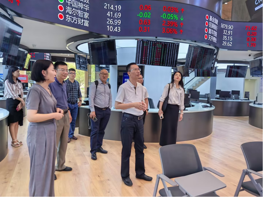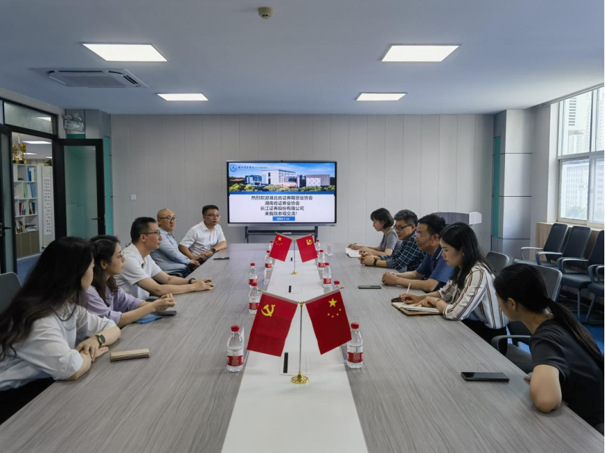 7月11日下午,湖北证券期货业协会秘书长李翎、湖南期货业协会刘丹岳、长江证券投教专员王凯一行来学院进行交流,并参观学校新金融智慧学习工场。学院院长严良、副院长孟静、陈红兵、金融教研室徐若瑜和张盼参加本次交流。