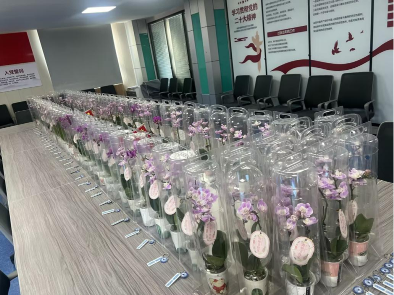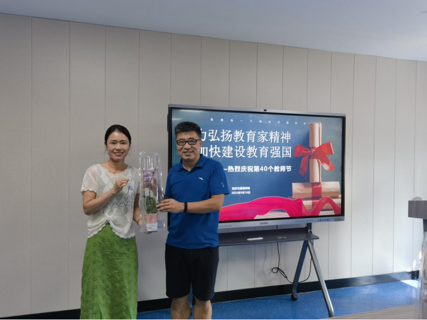 随后,学院班子成员为参会老师送上学院精心准备的教师节礼品——蝴蝶兰鲜花礼盒和定制钥匙扣。