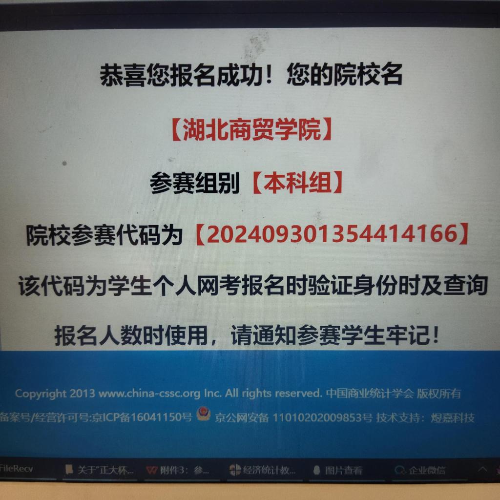 1.登录中国商业统计学会官网http://www.china-cssc.org,“第十五届全国大学生市场调查与分析大赛”专题网页,本科组参赛代码为:202409301354414166,专科组参赛代码为:202409301404382337。