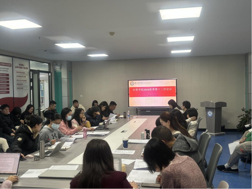 2024年11月27日下午,经管学院在学院会议室召开了秋季学期的第十三次全体教师会议。本次会议由党总支书记王珉主持,经管学院全体教师参加本次会议。