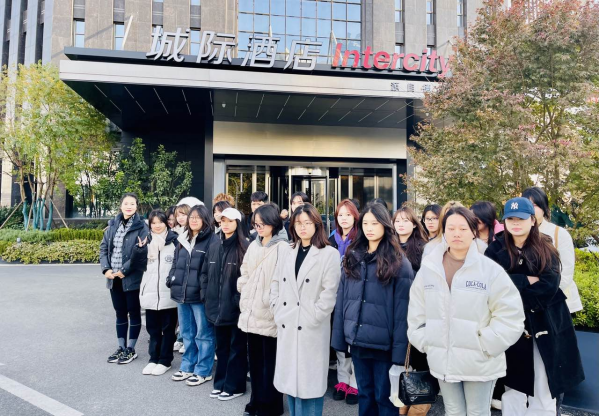 《华住集团酒店认知实习》是酒店管理与数字化运营专业新生的第一次外出实习,也是学生首次系统了解酒店品牌文化、酒店选址、空间设计、客户群体等行业现状。基于22版酒管专业人才培养方案课程设置安排,经管学院旅游教研室主任曹珍珠于2024年12月11日和14日带领29名学生分别在咸宁和武汉两地开展为期两天的酒店认知实习。此次认知实习地点为汉庭酒店3.51版本(咸宁十六潭公园店)、全季酒店5.0晓山青版本(咸宁市政府店)、城际酒店(武汉关山大道店)和汉口江滩漫心府,品牌涉及华住集团旗下的经济型和中高档两类。