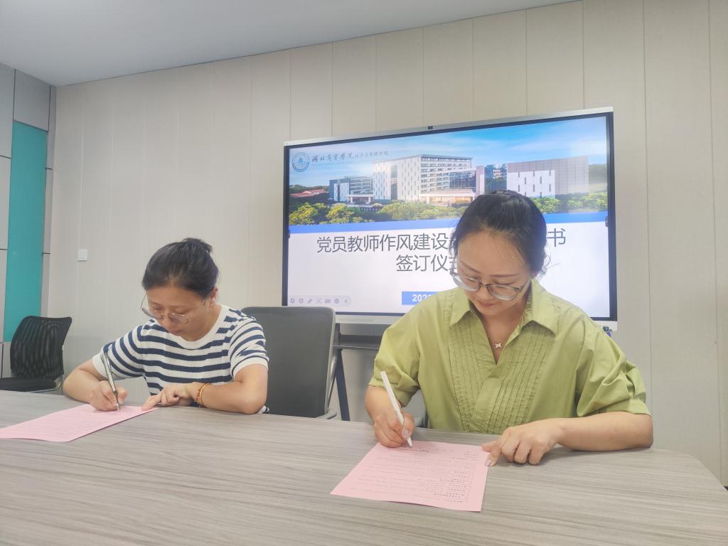 签订仪式庄重严肃,全体教师逐条研读责任条款并郑重承诺。此次"双责任书"制度的实施,标志着学院师德建设进入制度化、规范化新阶段,既为教师职业行为划定了清晰标尺,也为党员作用发挥搭建了实践平台,将有效促进师德素养与业务能力的双提升,为培养新时代高素质应用型人才提供坚实的师资保障。