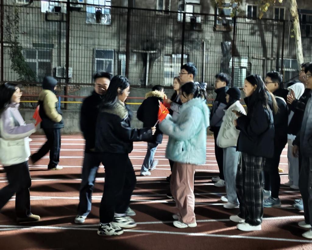 随着指令,夜跑活动正式拉开帷幕。3支队伍依次出发,队员们手持红旗,沿着预设赛道奔跑。赛道沿途设置3个接力打卡点,每到一处,队员需完成“精神传承问答”方可交接接力棒——“‘一二九’运动的核心精神是什么?”“如何以青春行动践行爱国初心?”简洁的问答让奔跑的过程成为思政知识的再学习、再深化。