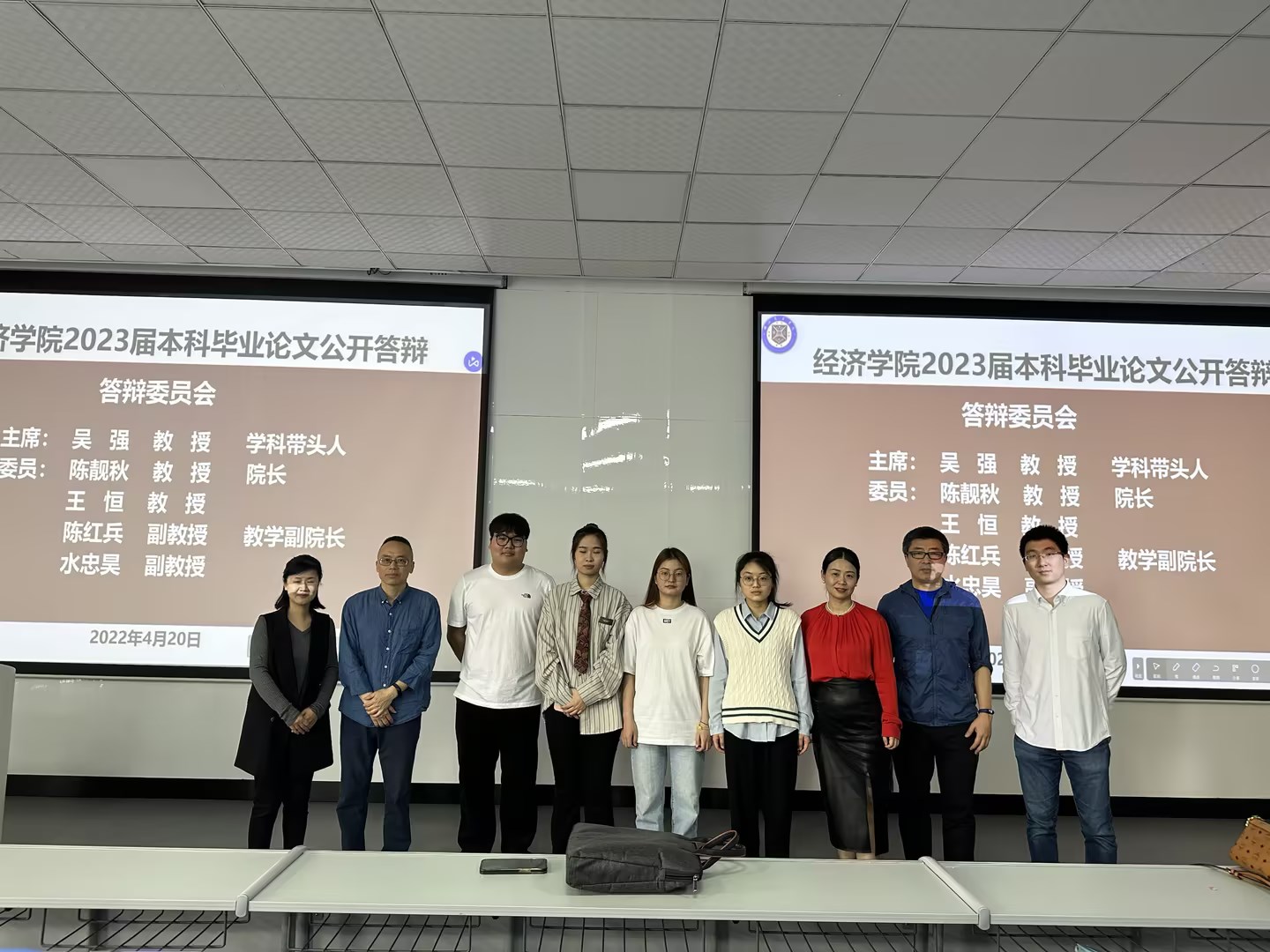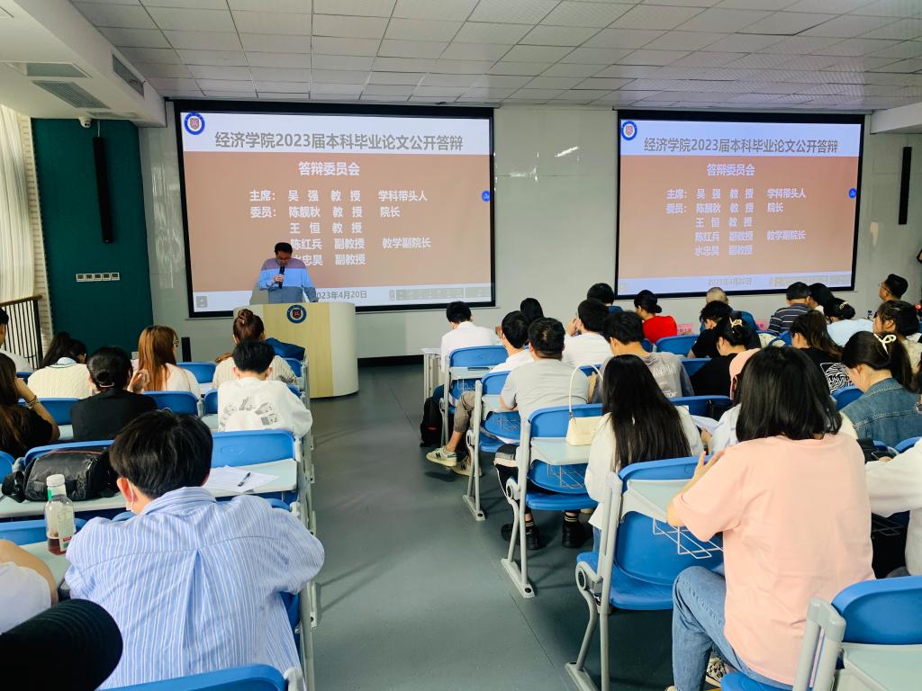4月20日,经济学院在鸿博楼J-03举行了2023届本科毕业论文预答辩,本次预答辩邀请了教务处常务副处长罗涛涛、副处长谢松和教学质量监管处彭宜佳教授莅临指导。学院学科带头人吴强教授担任本次预答辩委员会主席,院长陈靓秋、副院长陈红兵、王恒教授、水忠昊副教授为预答辩委员会成员,全体论文指导教师、全体毕业生参加预答辩,预答辩由院长助理崔北庆主持。