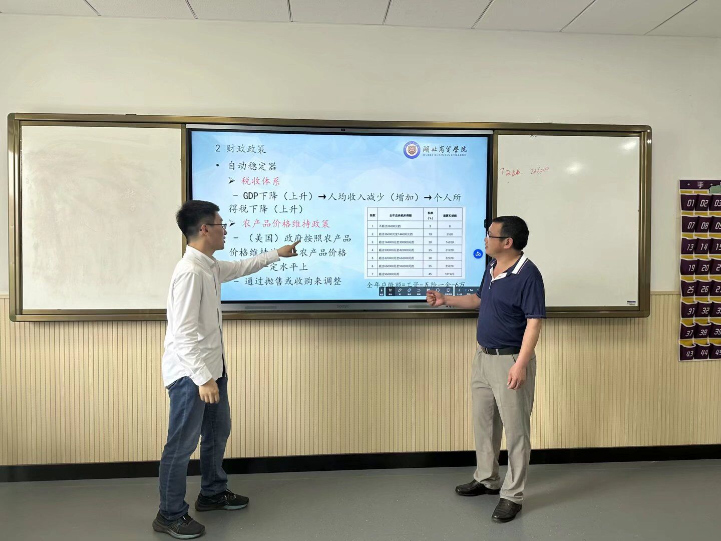 根据学校提高本科教育教学的相关制度要求,为提高教师教学技能和课堂教学效果,2023年5月,经济统计教研室就《经济学》课程开展集体磨课和走进年轻教师课堂听课活动。集体磨课活动由水忠昊博士主持,教授《经济学》课程的龚家友、唐令超、程慧教师参加了此次活动。
