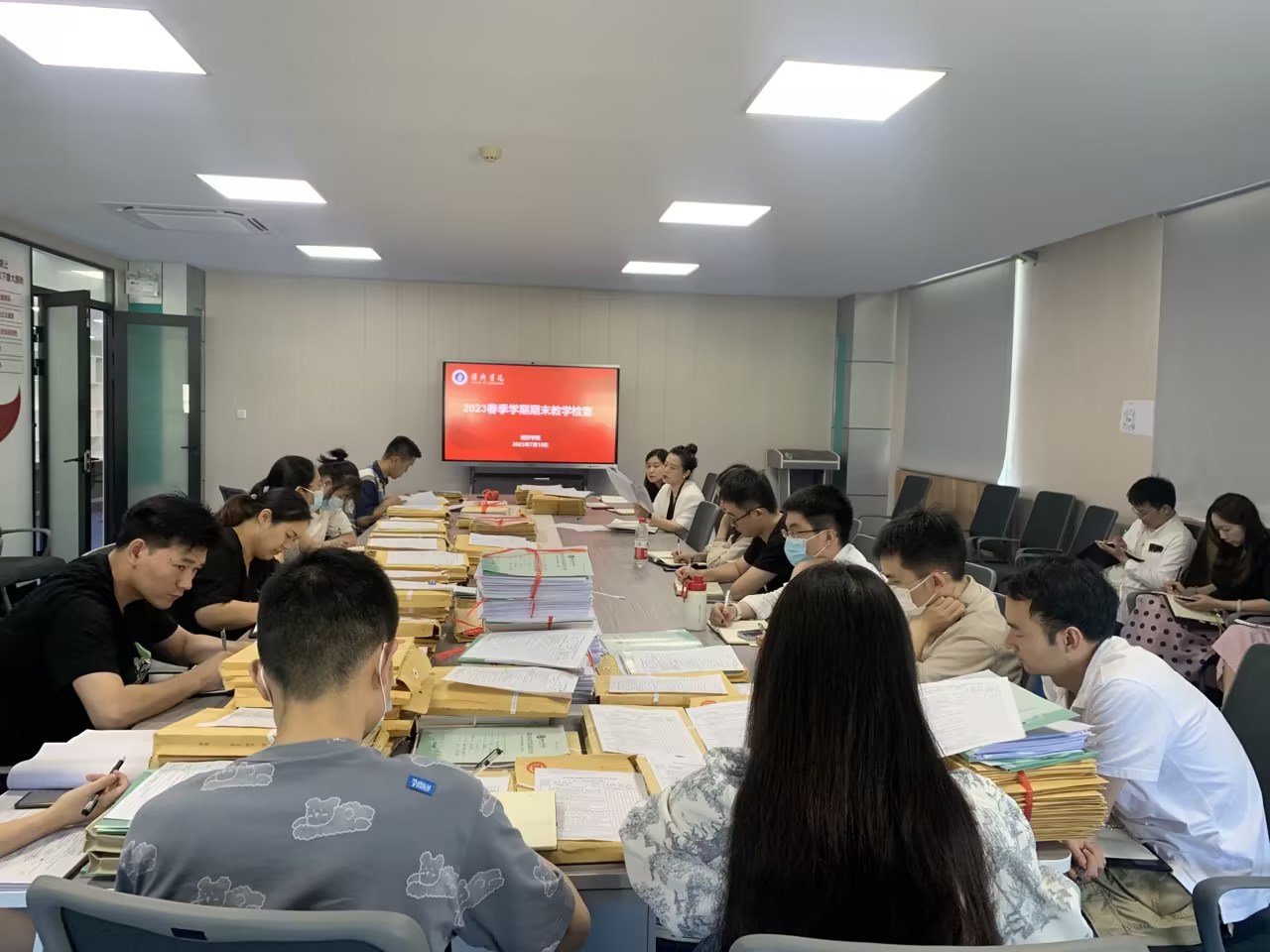 会上,院长陈靓秋主要就本次期末教学检查重点工作进行了布置安排,检查范围涵盖本学期课程考核材料、2023届本科毕业论文材料以及下学期教学计划及开学前的准备工作情况等。此次专项检查由学院统一安排,各教研室负责落实,责任到人,采取逐级交叉检查的方式进行,针对发现的问题及时整改,确保所有教学资料完整、规范,符合学校评估要求。
