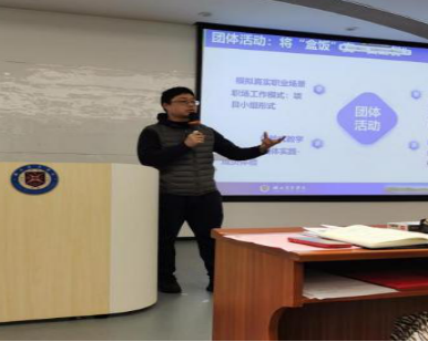 在示范课环节中,创业就业教研室的刘青,进行“激活职业规划类课程:团体活动与案例分析的双翼助力”的主题分享。刘青以激发学生学习积极性为出发点,通过教学方式的改革践行我校“四力”人才培养模式,培养学生成长型思维模式,进一步提高学生就业质量及未来成长竞争力。