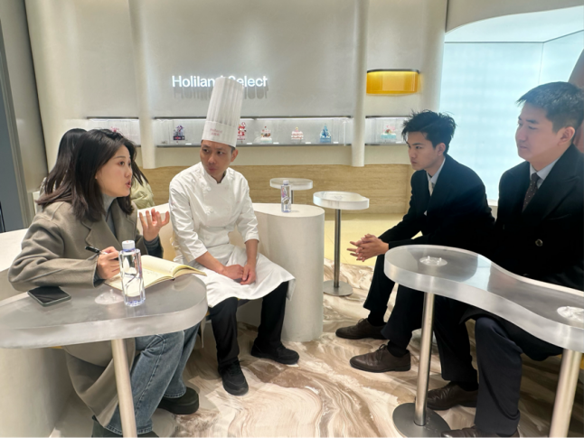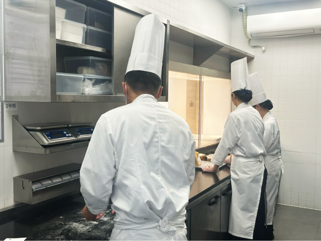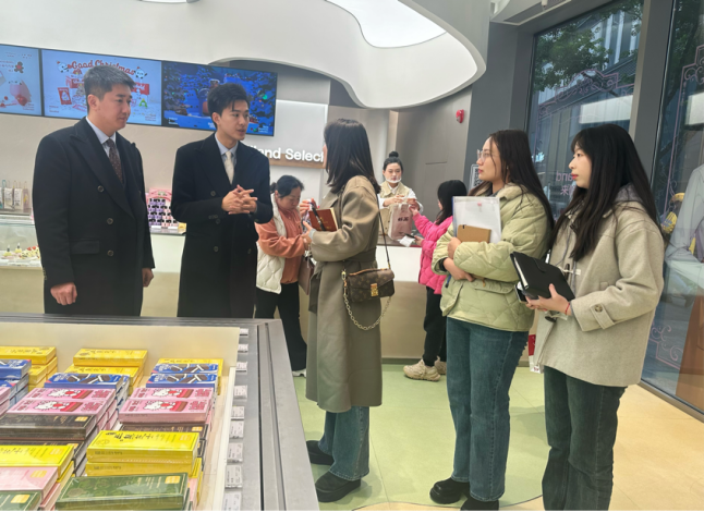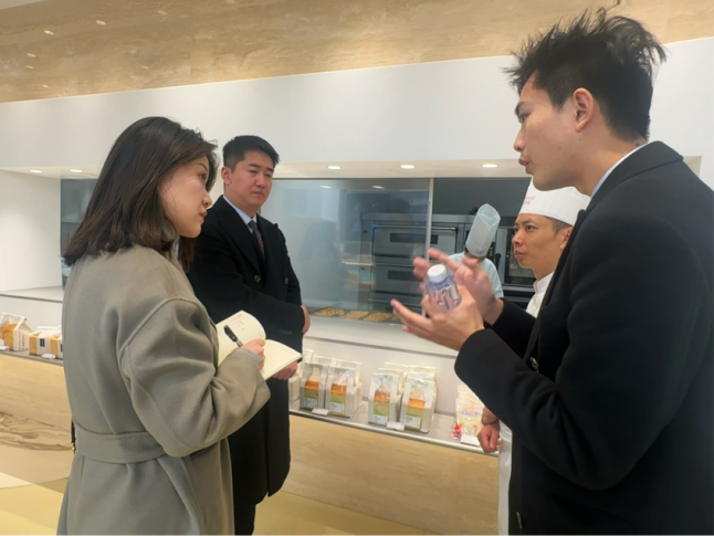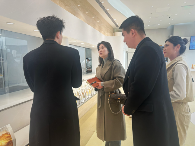好利来人力资源资源部孟经理带领学院老师深入企业内部,实地参观了面点工艺流程。学院代表们近距离观摩学习,对中西面点制作的工艺细节和质量把控有了更为直观且深刻的认识,这也为日后在专业教学中融入实践精髓、提升教学品质提供了鲜活素材与有力支撑。