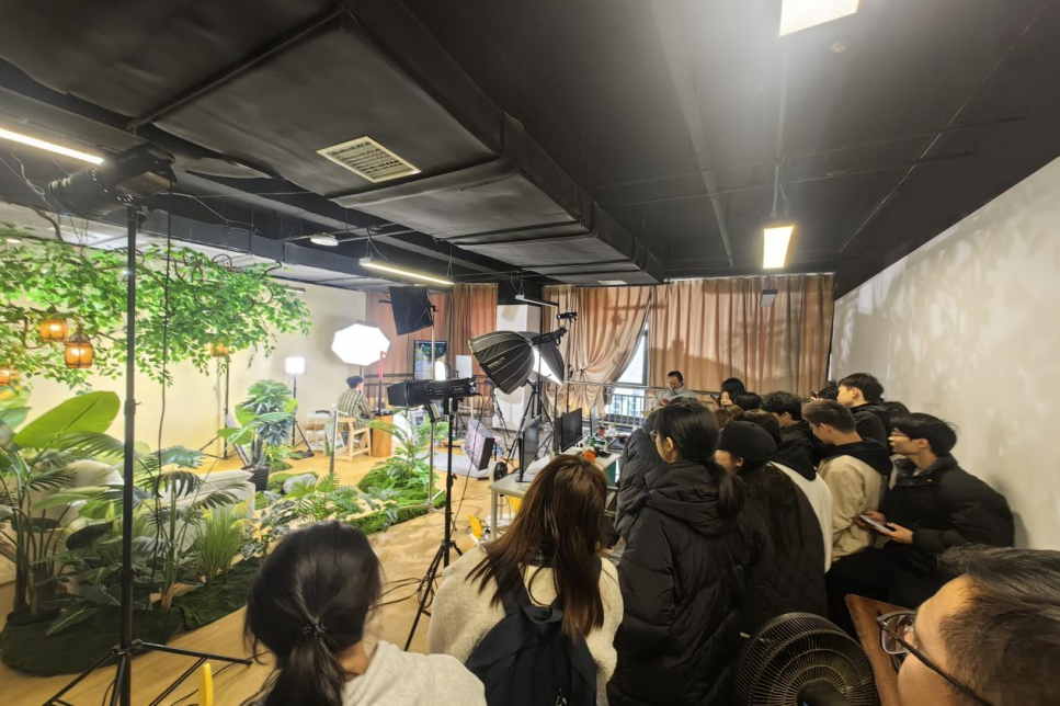随后,学生们参观滴水科技的直播间,对直播间搭建、直播前期准备、直播过程中各项分工等有了更直观的了解与认知。