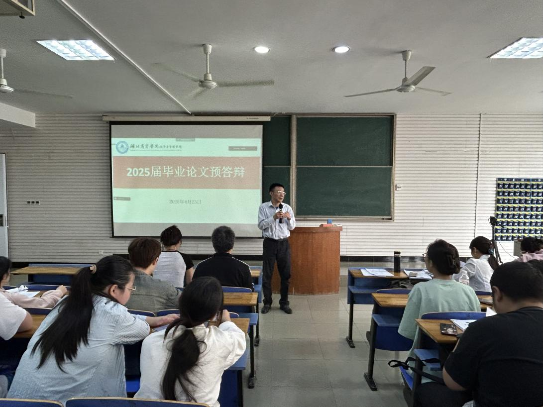 为进一步提升学院本科毕业论文指导和撰写质量,帮助全院师生明确毕业论文答辩的关键流程、环节和质量控制标准,yl7703永利集团于2025年4月23日下午在综合楼C301组织2025届本科毕业论文预答辩。来自不同专业的3名学生依次汇报了各自的研究工作,答辩组进行了提问和详细的点评。学院院长严良担任答辩组长,并进行了总结讲话。武汉校区师生现场观摩答辩过程,咸宁校区同步线上参会观摩。
