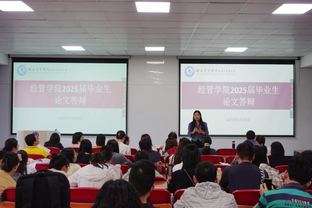 2025年4月26日,yl7703永利集团于鸿博楼开展2025届武汉校区本科毕业论文答辩工作。上午8时,学院于J2教室组织答辩评审会议,明确答辩要求与注意事项。副院长孟静要求,答辩组教师要严格按照论文答辩评分标准,从选题、内容、方法、格式等多方面把控论文质量,详细指出学生论文改进完善之处。院长严良强调,答辩老师既要严格把关,又要体现人文关怀。答辩秉持公平、公正、公开原则,按学生自述、教师提问、学生应答、教师评议与评分的流程有序进行。
