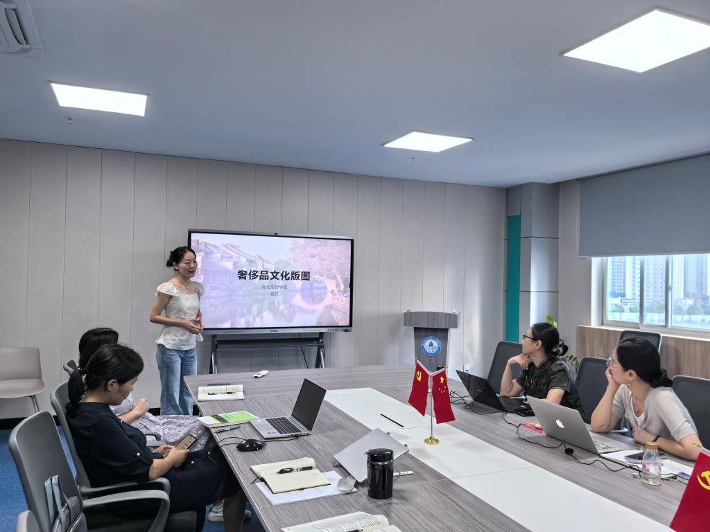 刘巧老师就《奢侈品文化版图》这门公选课的改版进行说课。她讲到此次改版从大纲结构、课程思政等方面进行了优化,尤其是增加了对我国古代瓷器、丝绸等的讲授,从历史角度为学生提供全球视野,增强文化自信。