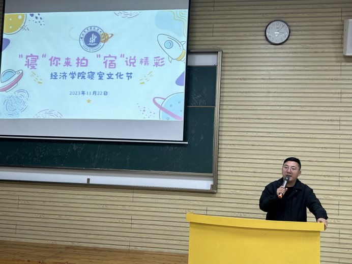 为进一步加强学生文明教育,发挥学生公寓的育人作用,持续营造安全、温馨、优美的生活学习环境,11月22日晚,经济学院在咸宁校区举办“‘寝’你来拍 ‘宿’说精彩”2023年寝室文化节之“最美寝室”风采展示活动。经济学院党总支副书记谢志洋、辅导员鲍旭及学生代表参加活动。