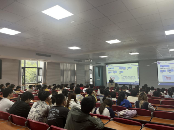 为使2023级新同学能更好的适应大学新生活,更加详细地了解学院,明确校纪校规,培养良好的学习习惯。管理学院于2023年10月9日在J2开展新生入学教育活动,本次活动由学院辅导员刘淞老师主讲,管理学院新生辅导员杨雪滢老师及2023级全体新生参加。