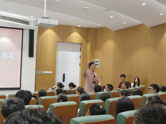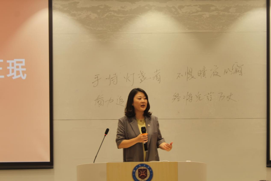 接着,管理学院范碧霞教授代表学院教师发言。她强调:“读书是一门学问,也有不同的境界。第一境是止步于书本表面,老师讲了什么,就学什么。第二境则是学到了知识,但不止步于粗浅,而是渴望更多知识,学无止境。第三境界就是如柏拉图的理想国中的哲学王一般,探究知识的本质和思想的边界。”