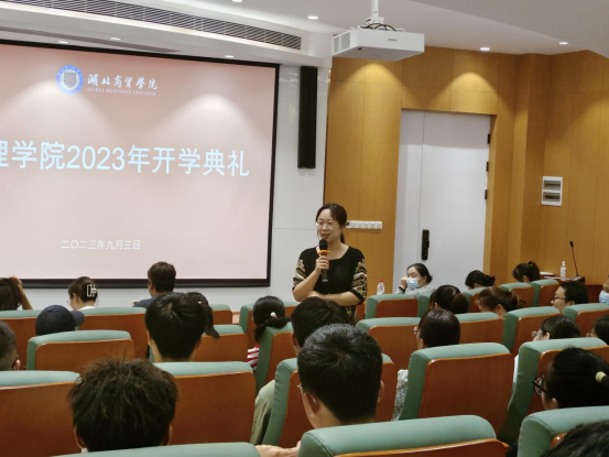 首先,管理学院的全体教师向各位新生进行自我介绍,并送出新生寄语。老师们寄语2013级新生,来到湖商,就要要读懂湖商,传承“梦想,行动,智慧,快乐”的精神,把学习和科研融入到建设国家的远大理想和实践中去。